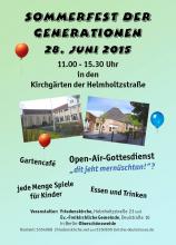 Sommerfest der Generationen. Stände. Aktionen. Buntes Bühnenprogramm. Open-Air-Gottesdienst. Freude am Leben. Freude an der Begegnung. Freude an Gott.