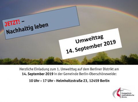 Der Umwelttag am 14. September 2019 unter dem Motto: „JETZT nachhaltig leben“ hat viele begeistert. Von „Nachhaltig leben – lokal bis „Nachhaltig leben – global wurden viele Themen behandelt. Als Refereintinnen und Referenten waren mit dabei: Pastorin Denise Courbain (Referentin der EmK für globale Gerechtigkeit und ökologische Herausforderungen), Jörg Romanski (Evangelische Kirche), Hans-Georg Baaske (Umweltbüro der EKBO) und Gerd Petras (Kirchlicher Umweltauditor der EmK). Beim Rückblick auf den Umwelttag sagte eine Frau: „Vieles beachte ich schon, aber der Umwelttag hat mich neu motiviert.“ Eine andere Person: „Für mich war am wichtigsten: weniger oder kein Fleisch zu essen.“ Ein dritter meinte: „Aus kleinen Anfängen können große Folgen werden. Deswegen habe ich angefangen, anders zu leben.“ — In ihrer Predigt am 15. September in der Friedenskirche zum Thema Schöpfung sagte Pastorin Denise Courbain: „Ich weigere mich, keine Hoffnung zu haben.“