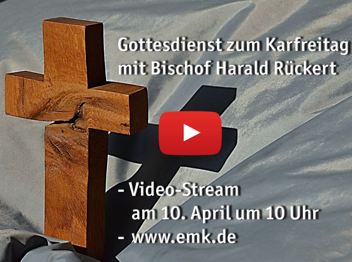 Gottesdienst zu Karfreitag mit Bischof Harald Rückert aus Frankfurt/Main. Der Video-Stream steht am 10. April ab 10 Uhr über den You-Tube-Kanal der EmK (www.youtube.com/user/emkde) bereit. Das Video kann auch zeitversetzt und auch noch in den darauffolgenden Tagen angeschaut werden.