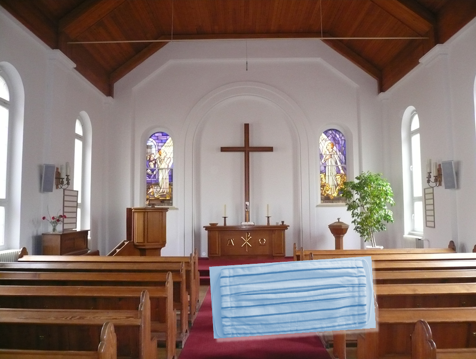 Eine herzliche Einladung zum Gottesdienst unter Corona-Regeln. Selbstverständlich entscheidet — wie auch sonst immer — jede und jeder für sich, ober er*sie am Gottesdienst teilnimmt! Wir haben eine gute Lösung für das Singen bzw. Summen gefunden. Wir achten auf Abstände — bitte die markierten Plätze frei lassen! Und bringen Sie bitte Ihren Mund/Nasen-Schutz mit. Es wird kein Kirchencafé geben. Seid getrost, ihr seid gesegnet! JGe
